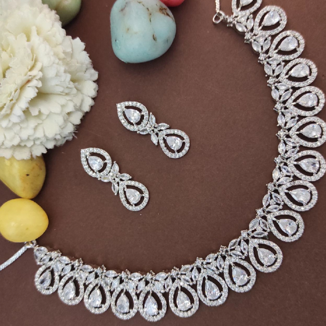 American diamond necklace with earrings and adjustable chaiN for any occasion.