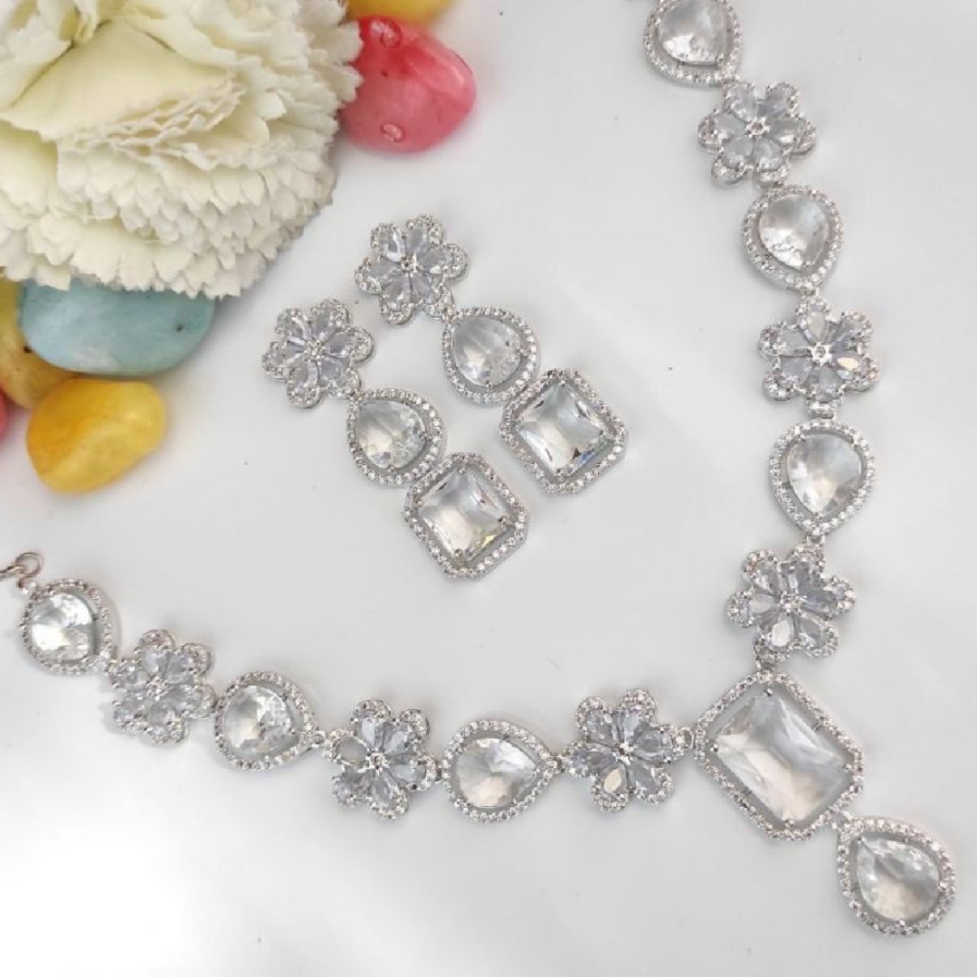 Premium AD Necklace in white with earrings