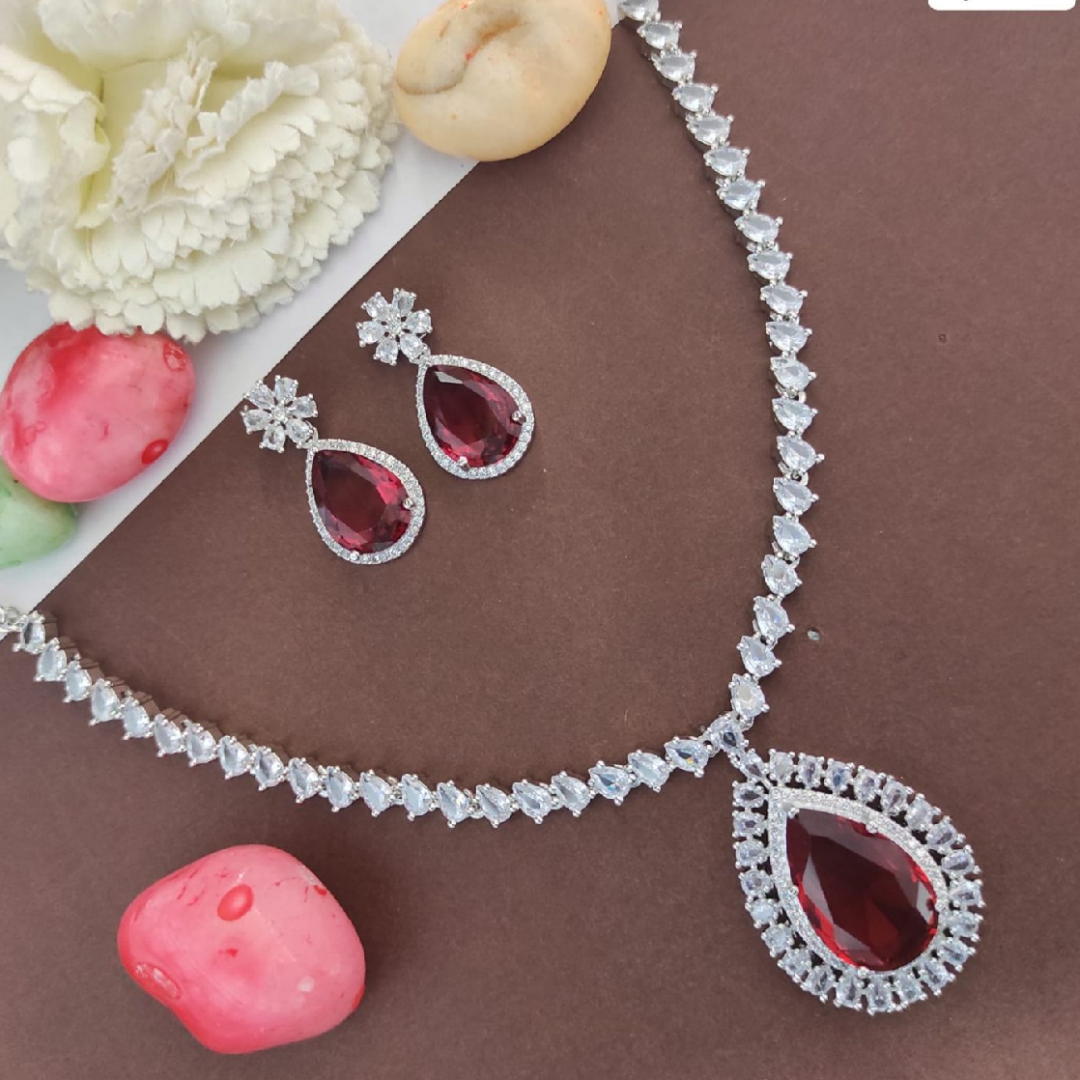 Bollywood inspired Pure brass & American Diamond Necklace with earrings